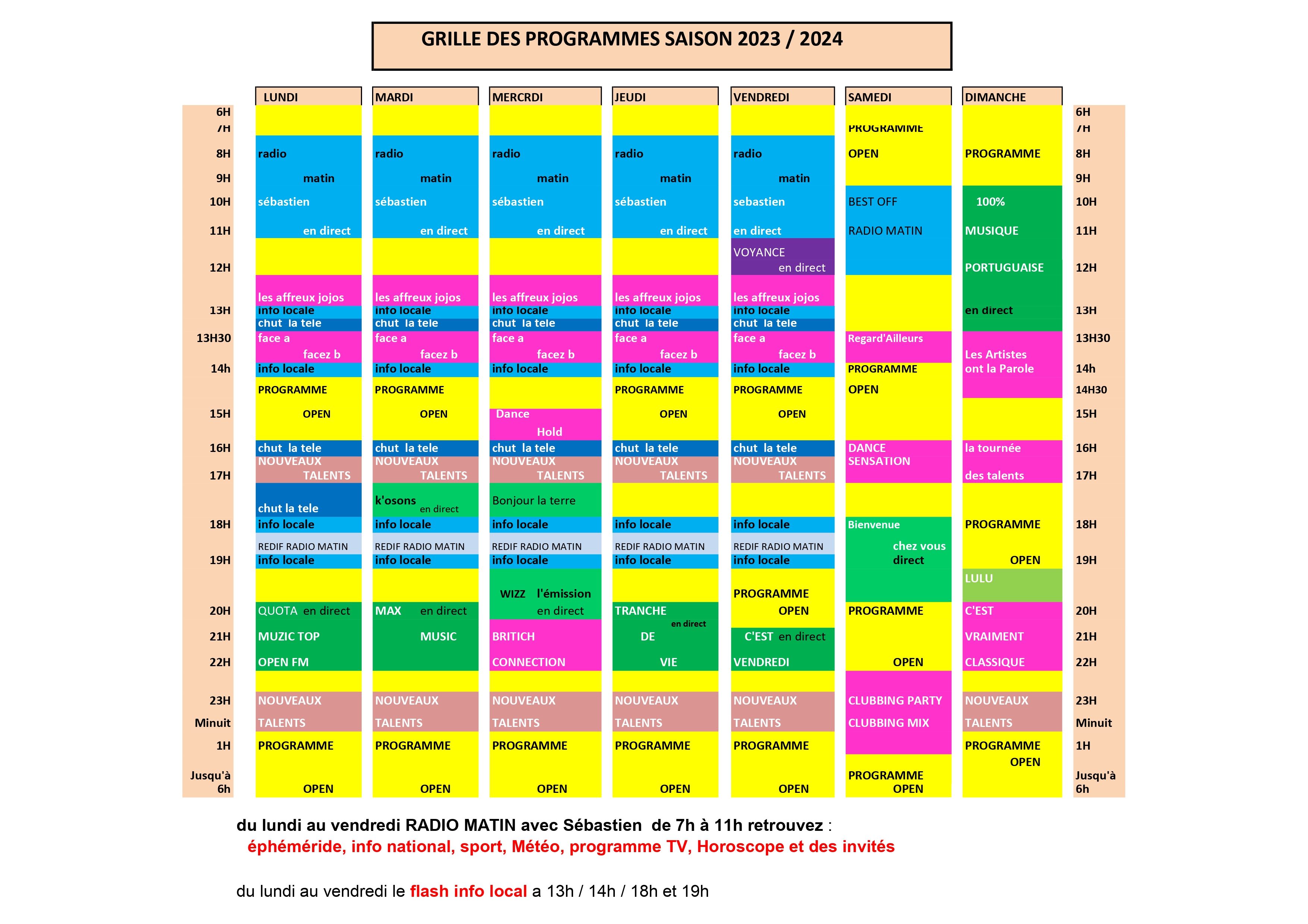 des manifestations locales, accompagné de musiques année 80, Rock, Hit... et d' infos nationales.